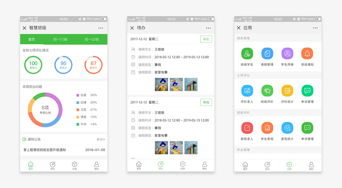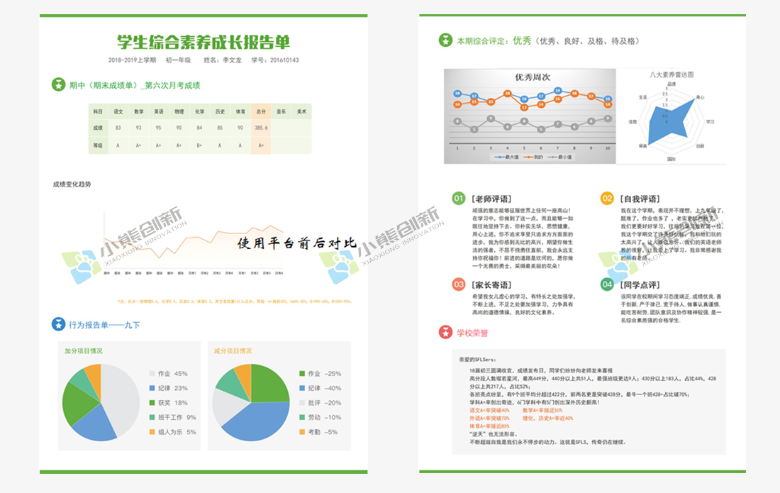 3、告假請求,小我評估報告,同窗互評,的家長贈語等。